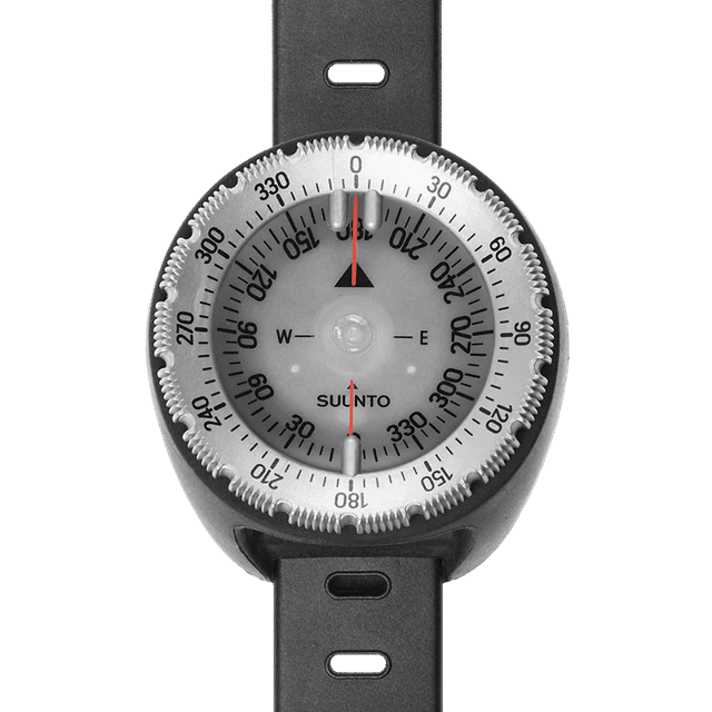 通过腕带安装潜水指南针 SK-8 和 SK-7 的保护罩