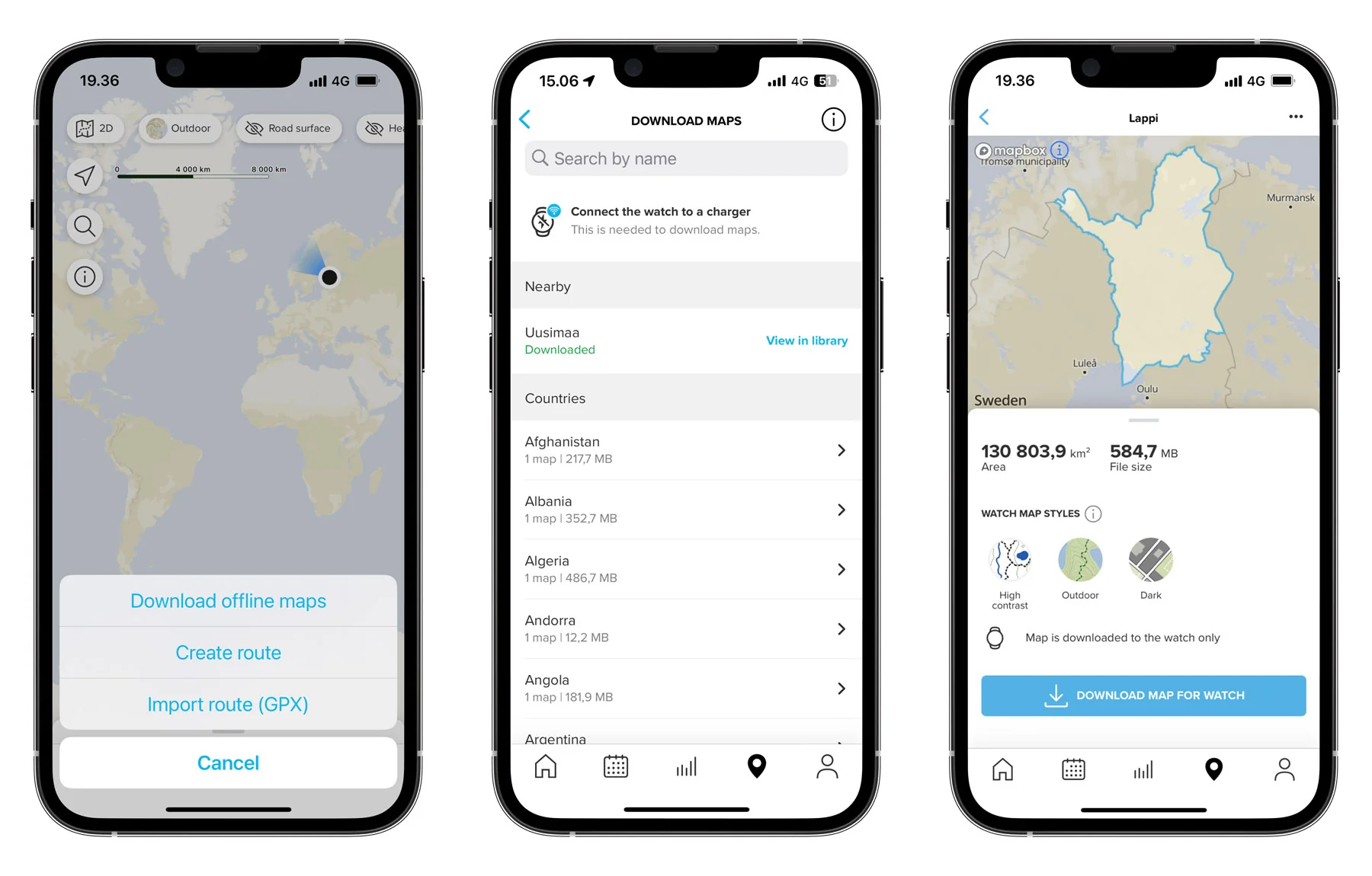 手表的存储容量也很充足:你可以下载 32GB 的地图。作为参考,整个法国的地图大小为 7.47GB,而整个加拿大的地图大小为 15.17GB。当然,较大的地图下载时间会更长,所以更具体地选择区域有助于你更快地将地图下载到手表上。