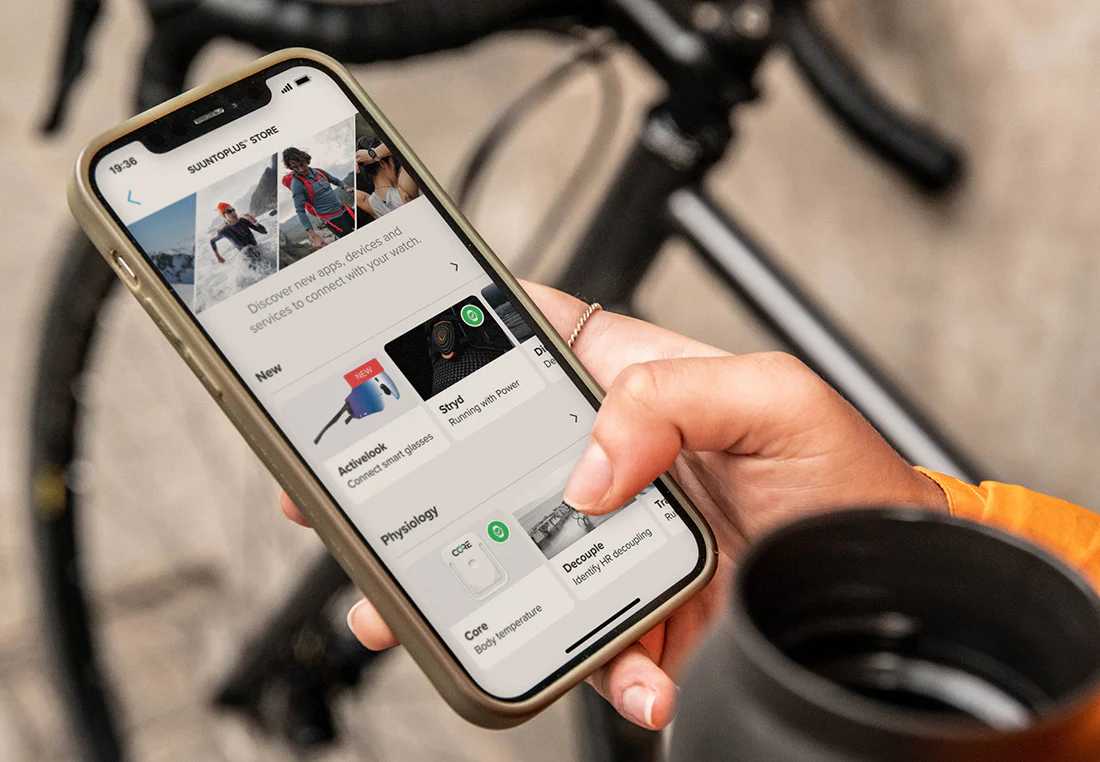 设备兼容性可以在 SuuntoPlus 商店中找到。首批可用设备包括 Activelook 智能眼镜技术,该技术被 Engo、Cosmo 和 Julbo 等品牌使用。CORE 体温传感器也可用。新的 Suunto 9 Peak Pro 与这些设备兼容,Suunto 5 / 9 系列产品也将在今年晚些时候兼容。