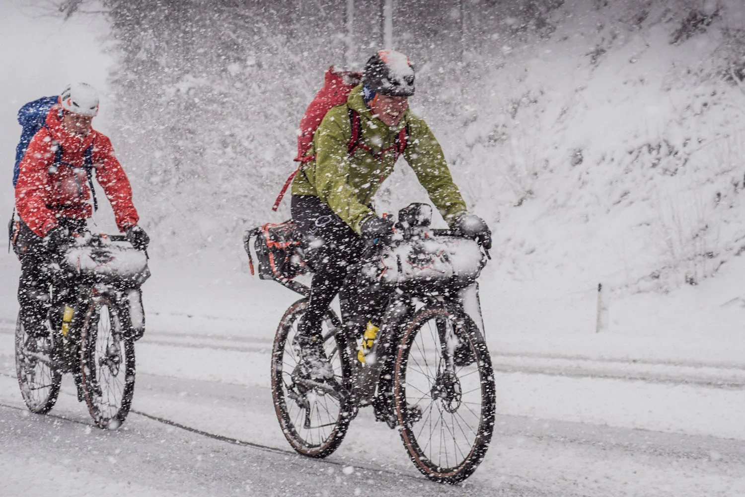 哈哈,不太顺利!我们出发 1.5 小时后就陷入困境,不得不推着自行车穿过 30-40 厘米厚的新雪。总体来说,天气非常冷,而且我们低估了行李的重量。我们携带了所有装备——以公平的方式进行登山。第一晚,警察还把我们赶出了我们的小木屋,因为在奥地利,在野外睡觉被视为非法露营。