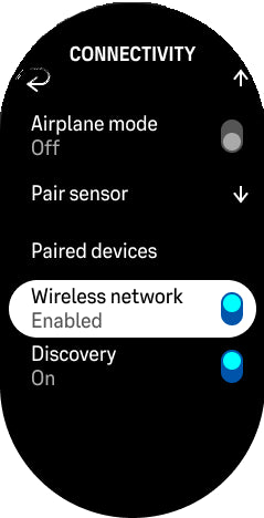 为此,请确保手表中的 "无线网络"开关 (位于"设置 => 连接"下)已打开。同时,确保 飞行模式 和 省电模式 已关闭。