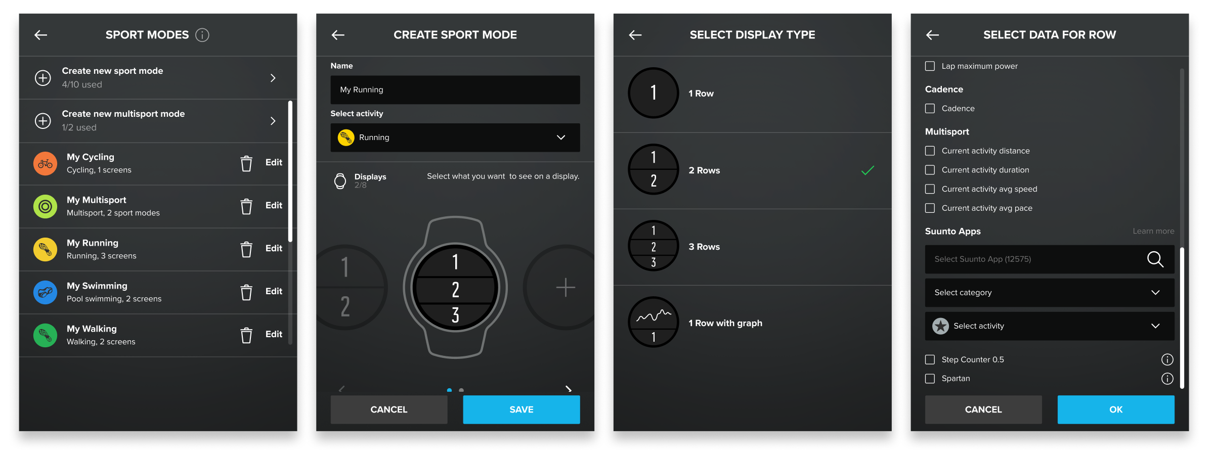 - 在选择屏幕信息时,您可以将任何Suuntoapp添加到字段中。