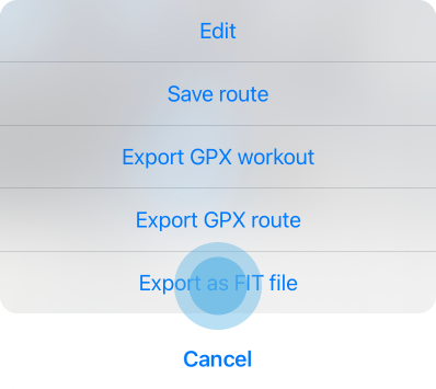 在训练界面的右上角菜单中,可以选择下载与Suunto应用同步的任何活动的.fit文件。 进入您的日历(底部导航栏的第二个图标)。 选择您希望导出文件的训练记录。 点击右上角菜单(三个点的图标)。 选择导出为FIT文件。 选择您希望保存的iPhone目录,直接发送到您的电脑、关联的驱动器或联系人。