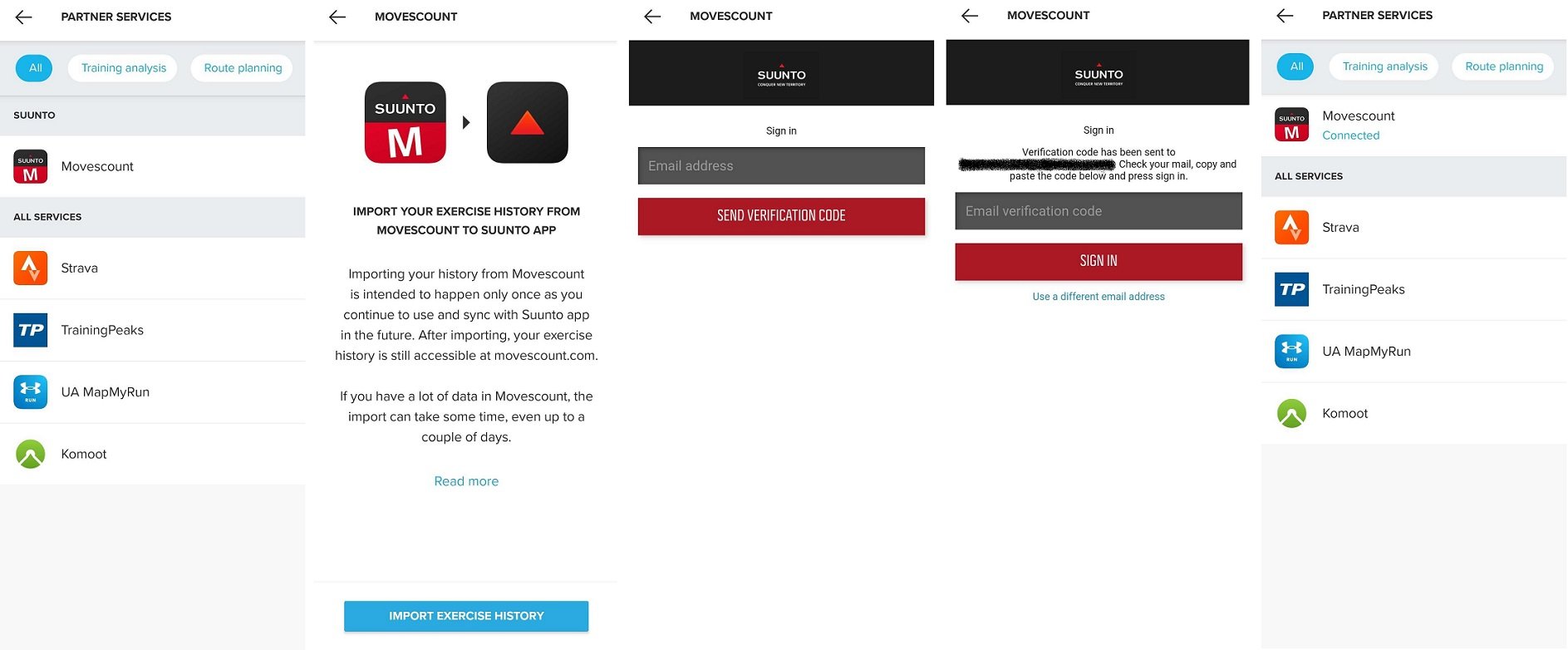 - 转移完成后,我们将向您发送电子邮件确认,您将在 Movescount 下看到“已连接”。