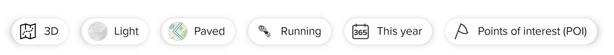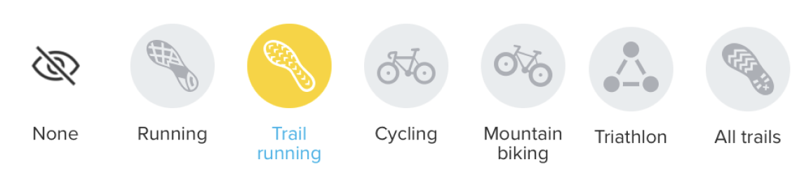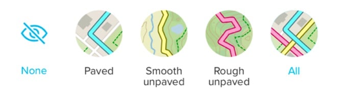 - 路面类型: 为地图添加一个图层,允许您选择训练或冒险所需的路面类型。您可以根据需要同时选择和突出显示多种路面类型。