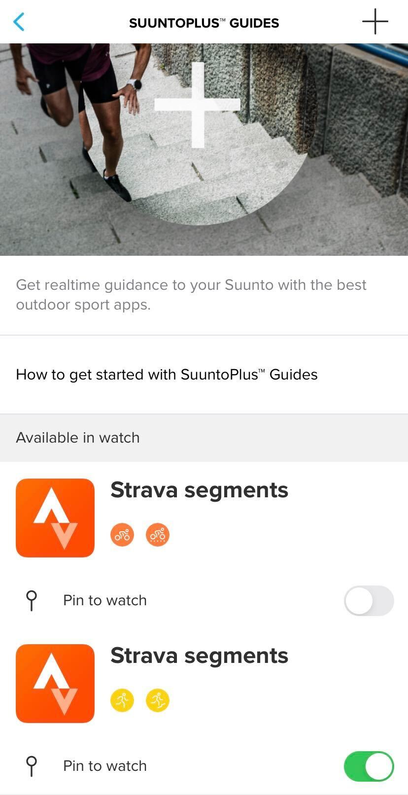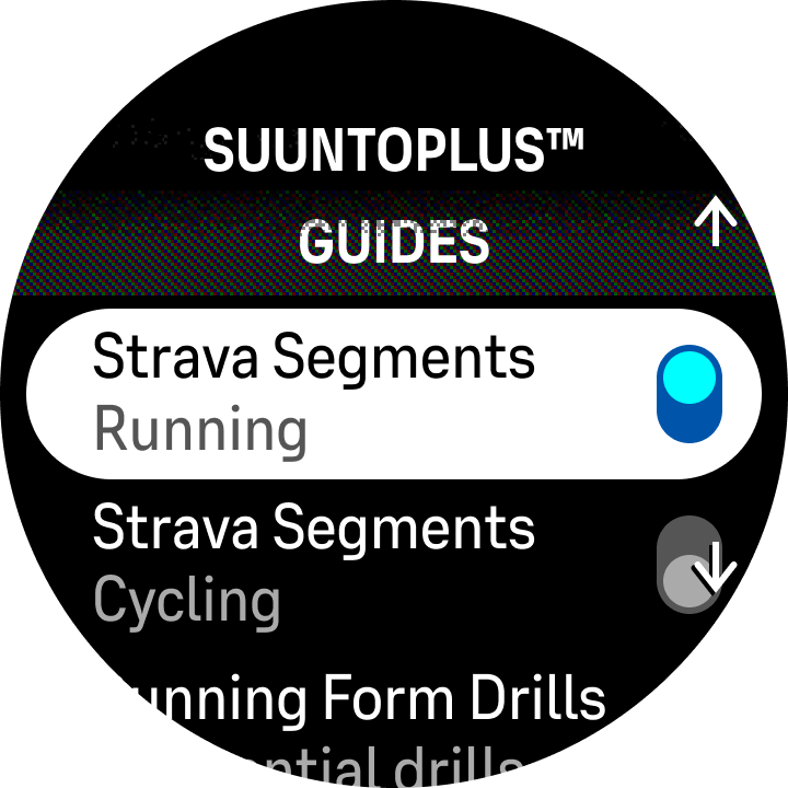 注意:由于 Strava 实时路段被加载到您手表中的专用 SuuntoPlus™ 指南中: