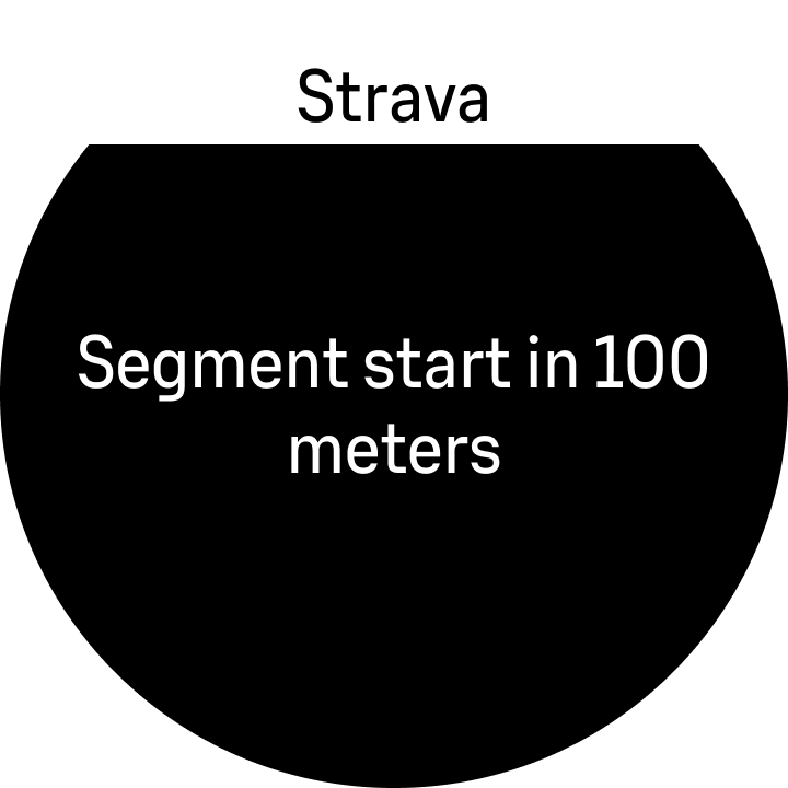 在跑步或骑行过程中,您将能够看到最近的路段起点位置有多近;一旦您进入 100 米范围内,手表将提醒您正在接近该路段,当您到达起点时,路段将开始(注意:由于 Strava 路段是单向的,如果您从错误的方向接近,路段将不会开始):