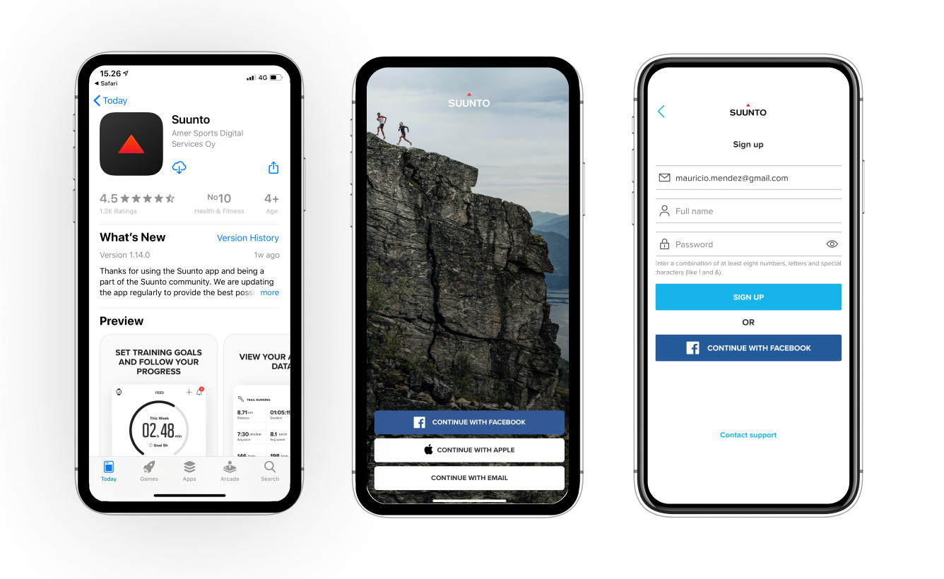 注意:您只能使用已创建的Suunto应用程序账户登录(见上文)。 您不能在SuuntoLink中创建新账户。