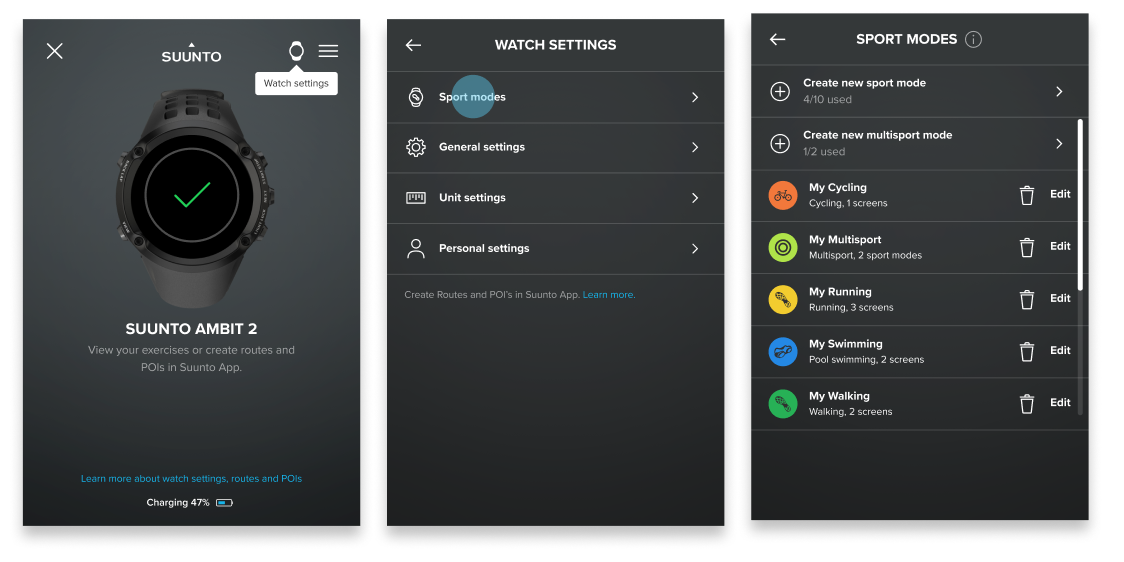 - SuuntoLink将成为您创建和编辑新运动模式和设置的地方。