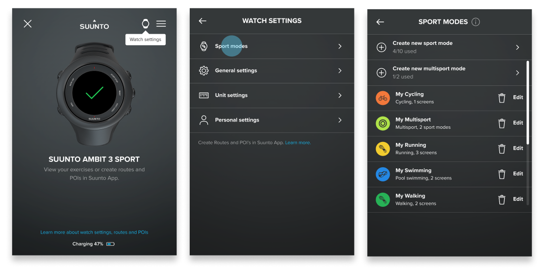 - SuuntoLink将成为您创建和编辑新运动模式和设置的地方。