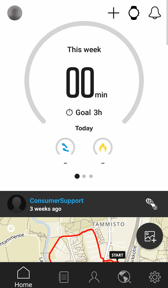 - 启动 Suunto 应用程序并点击 '手表’图标 进入手表视图。打开手机的蓝牙。