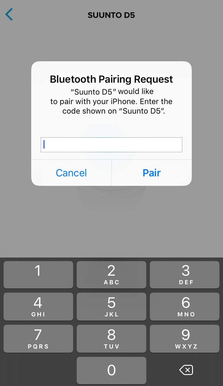 - 将潜水电脑上显示的密码输入手机上的配对请求字段,然后点击 配对。