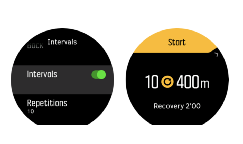 间歇训练是一种常见的训练形式,由重复的高强度和低强度运动组成。使用 您的Suunto Spartan、Suunto 5和Suunto 9手表,您可以在手表中为每种运动模式定义自己的间歇训练。