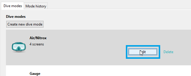 - 选择您希望查看CNS和OTU值的潜水模式,然后点击 编辑。