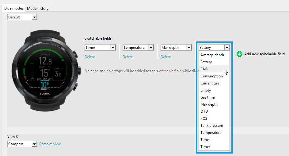 要在潜水期间查看这些值,请使用Suunto DM5将这些值添加到切换窗口。