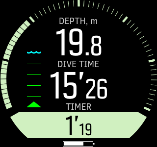 在仪表模式下潜水时,Suunto D5 作为底部计时器工作,不会计算减压信息。